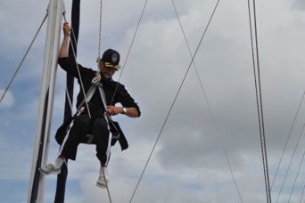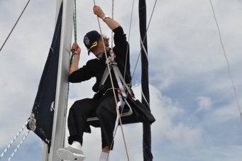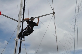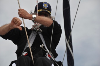 Puede que Roberto de cadete no se haya embarcado en el “Gloria” y que no haya subido por alto a sus mástiles ..... pero aqui está arriba en la jarcia de “Natasha”.