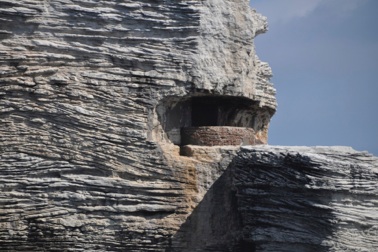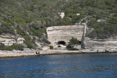 Saliendo de Bonifacio por la larga y estrecha ensenada. En la foto de la derecha se ve el punto desde donde anteriormente pasaban una cadena para impedir la entrada de buques enemigos a la caleta; esta se usó hasta la segunda guerra mundial.
