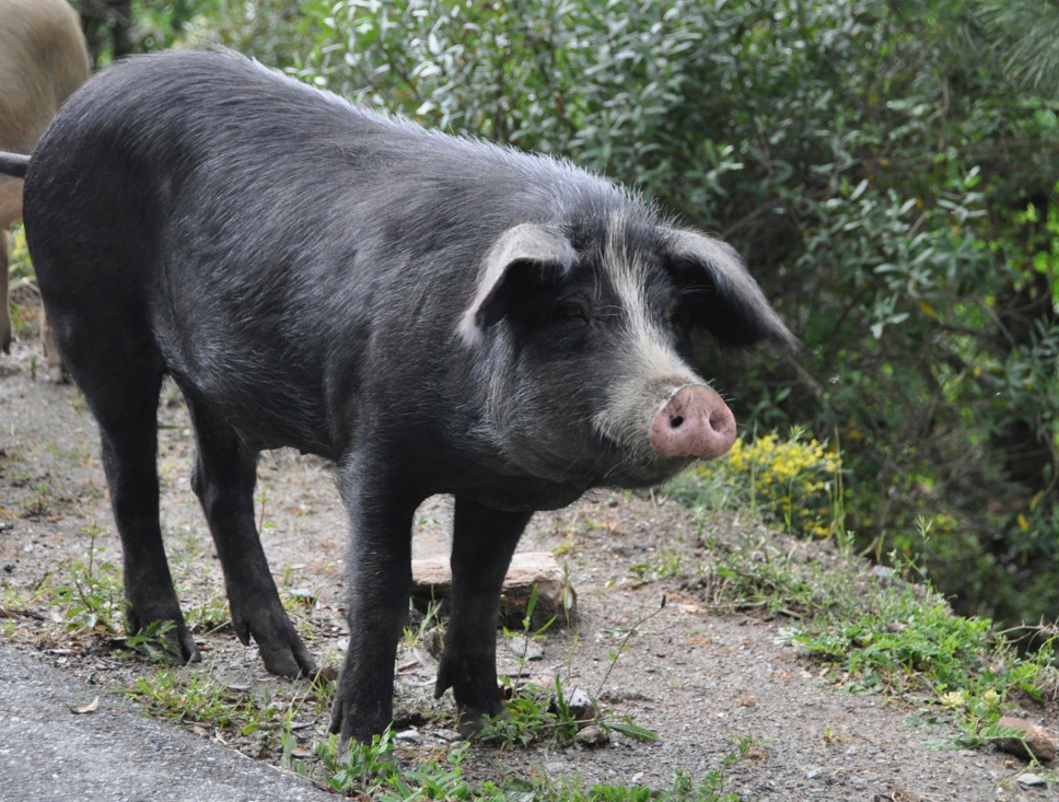 Nos metimos por carreteritas y trochas hasta lo último de la montaña, pasando por caseríos de solo unas cuantas casas. Nos topamos varias veces con manadas de marranos salvajes .... aunque no vimos jabalíes. Los bosques están llenos de jabalíes, de hecho el jabalí es el símbolo de Córcega; durante el invierno la ocupación de la mayoría de los corsos es cazar jabalíes y hacer salchichones, chorizos y salami de cerdo y jabalí ... deliciosos !!!